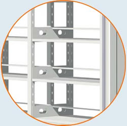 | 基座整體焊接合拼,架體為特殊雙面立板插入結(jié)構(gòu),立板中開有掛孔;擱板扣置于掛孔上;每層擱板一分為二,雙面擱板間距可分別上下調(diào)節(jié)。每節(jié)雙面間以整板分隔開。 該樣式密集架適用于要求承重大且密封要求高的庫房,一般用于存放私密性較強(qiáng)的檔案資料,因其前面帶封板,左右?guī)Ц舭?增強(qiáng)了密集架的防鼠、防盜性能,所以此架也被稱為“全封閉”型密集架。